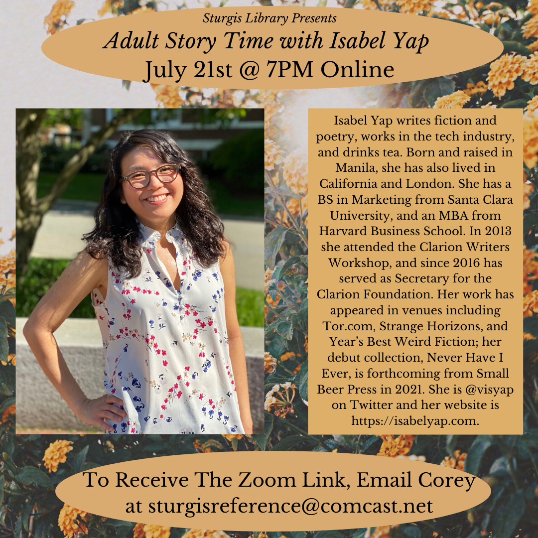 Quick reminder that I’m doing a reading with the Sturgis Library next Tuesday, July 21st at 7 PM EST online. To get the link, please email Corey at sturgisreference@comcast.net. Hope to see you there!
